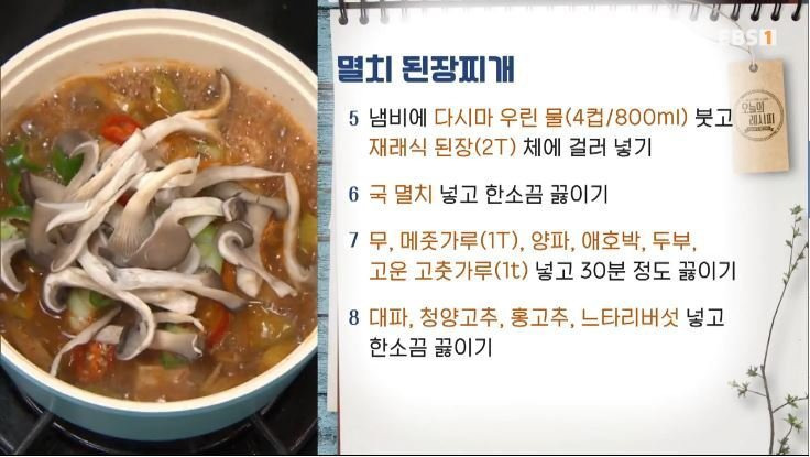 다시마 우린 물(4컵/800ml), 재래식 된장(2T), 메줏가루(1T), 국멸치(15g), 고운 고춧가루(1t), 양파(70g), 대파(30g),