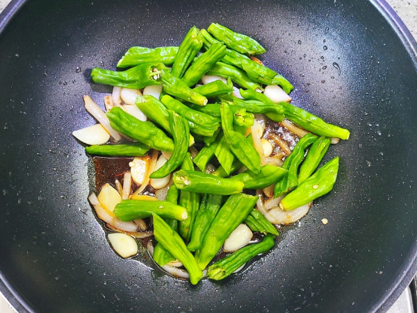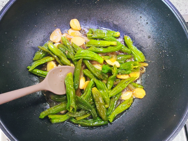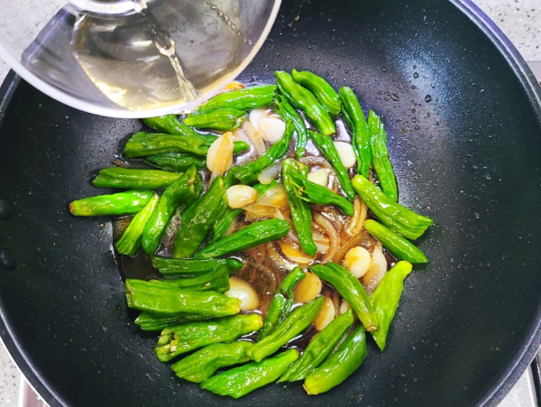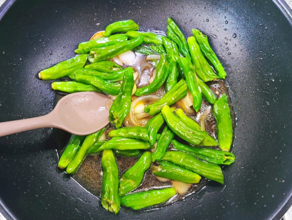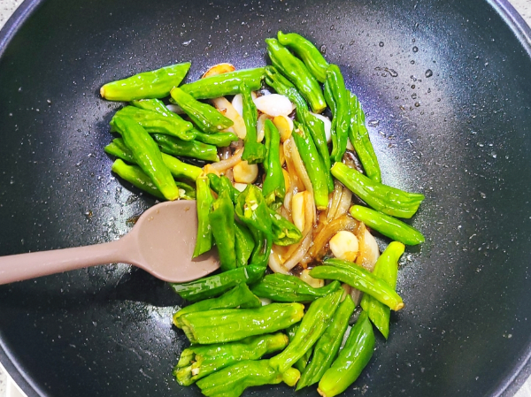 양념장이 끓어오르면 꽈리고추를 넣고