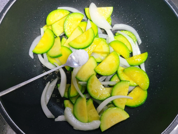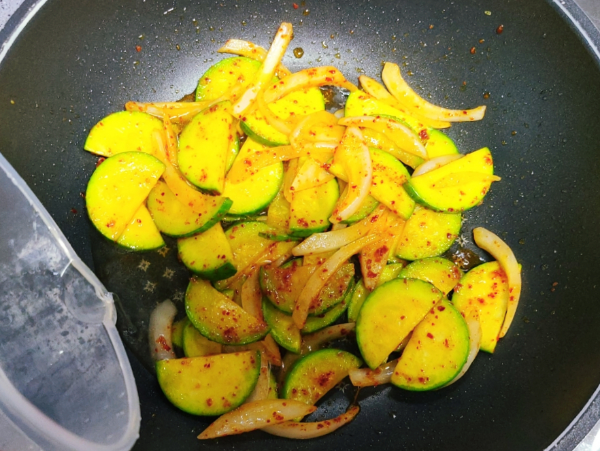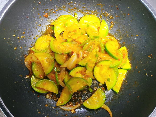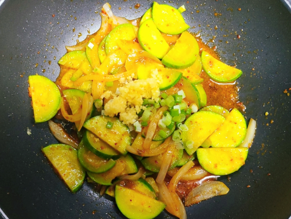 7. 애호박볶음 쪽파 & 마늘 넣기