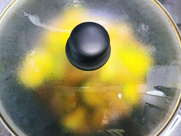 냄비 뚜껑을 덮고 가스불 중약불로 줄여서