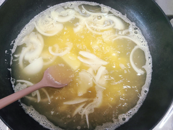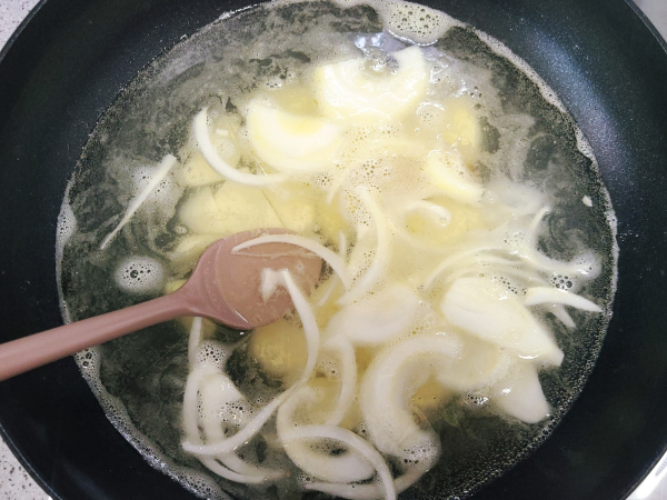 양파는 3mm 두께로 채 썰어 준비합니다