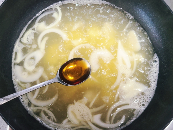5. 양파 넣고 거품 걷어내기
