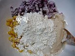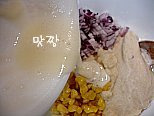 재료를 다 합하고 전분가루와 부침가루, 소금을 약간넣고