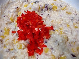 옥수수 통조림 3분의 1캔, 양파 2분의1개, 파프리카, 소금(아주소량 치즈가루에 간이 잇으니 조금만 넣으세요.)