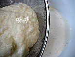 받아낸 국물은 가만히두어 전분을 가라 앉힌뒤에 가라앉은 전분을 반죽에 함께 넣어준다.