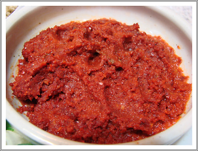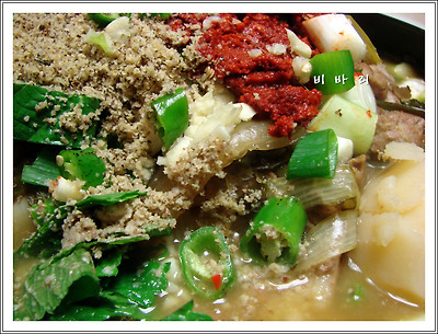 다대기: 뼈삶은 국물 3큰술, 고춧가루 3큰술, 후추