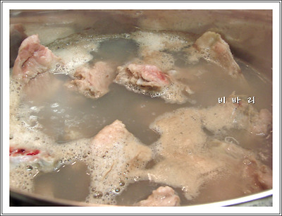 1, 등뼈를 찬물에 담가서 핏물제거 (2~3시간 )