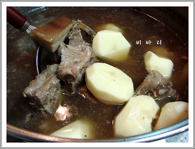감자는 뼈 삶을 때 마무리 단계에 넣고 삶아 건져두었다가 나중에 다시 넣어도 됩니다.