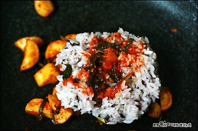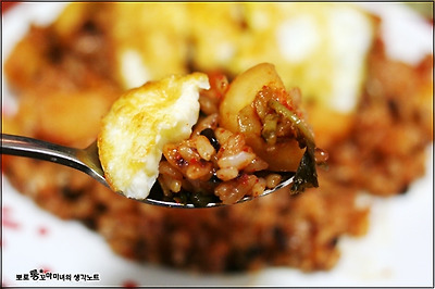 여기에 밥 넣고..김치국물 넣어서 볶아주세요.