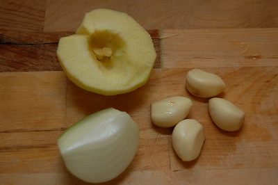 소고기(600g), 파(6cm), 사과(1/2개), 양파(1/4개), 마늘(4쪽)