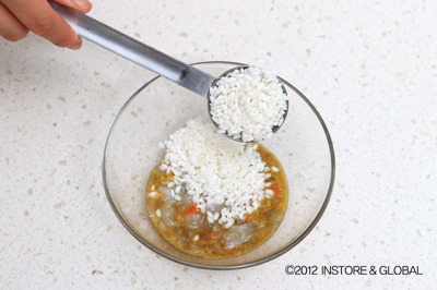 소금, 청주, 참기름을 넣고 섞은 후 불린쌀을 넣어 잘 버무린다.