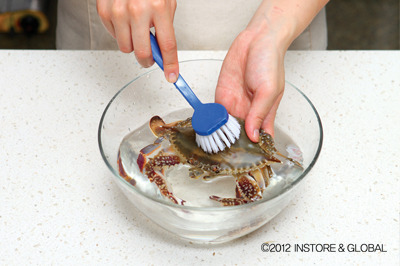 1 꽃게는 솔로 잘 씻어 등딱지를 떼어낸다.