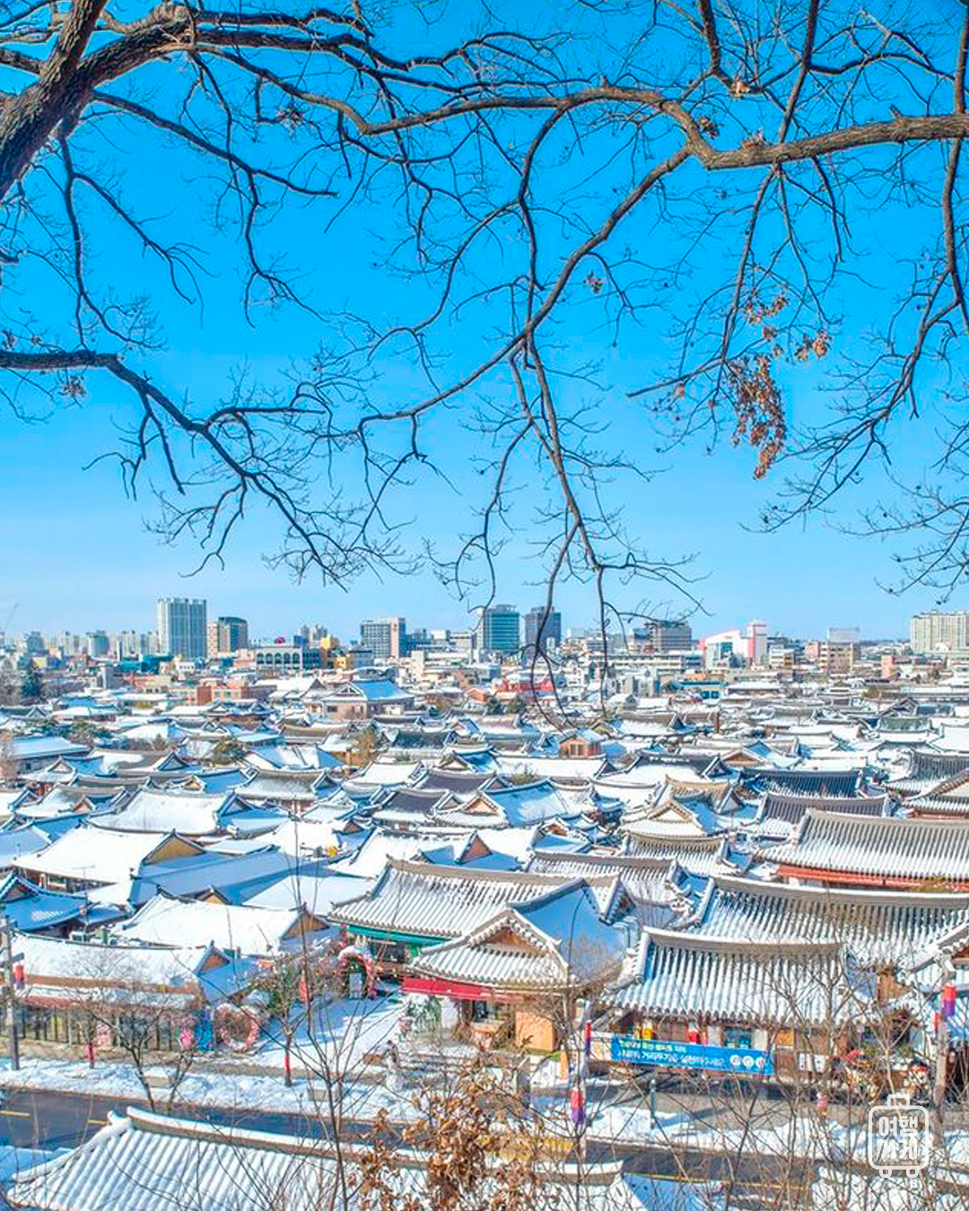 한옥과 새하얀 눈의 조화가 아름다운 이곳은 전주 한옥마을입니다. ✿˘◡˘✿