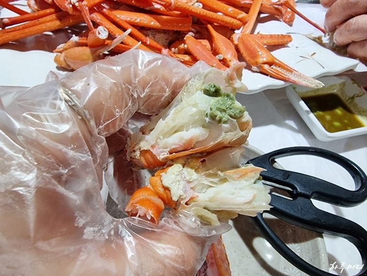 홍게 까는 법을 손수 보여주셨어요.