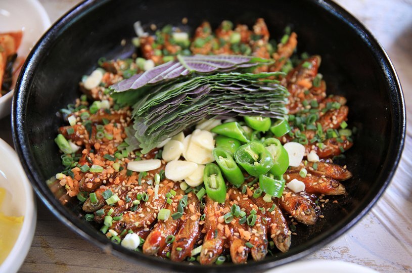 양념에 재운 빙어를 기름에 튀기듯 구운 음식으로 비주얼도 맛도 짱