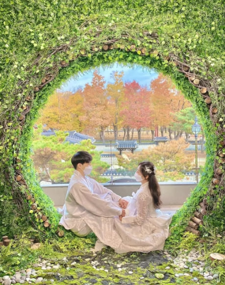 전주 한옥마을을 배경으로 인생샷을 건질 수 있는 비밀의 문 포토존도 있습니다. 한옥 좌식 분위기의 카페와 경기전 뷰가 어우러져 힐링하며 예쁜 사진 건지기 좋은 곳입니다! 영업 시간은 10:30~21:00이라는 점 참고 바랍니다.