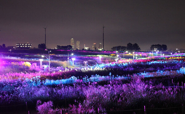하늘공원 일대를 비추는 라이팅 쇼는 은빛억새와 조명, 음악이 어우러져 화려한 볼거리를 만날 수 있는데요. 축제기간 동안 오후 7시부터 9시까지, 정시마다 야간 라이팅쇼가 펼쳐집니다.