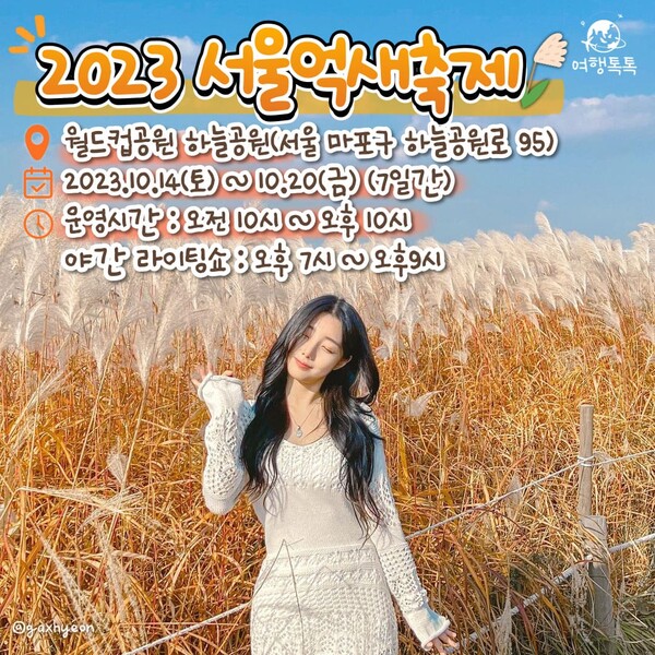 또한, 가을에는 자연도 서서히 옷을 갈아입는데요. 가을이 절정을 맞이하는 10월에는 가을빛의 센치한 감성을 한층 올려줄 '하늘공원 억새축제'가 열립니다. 여행톡톡과 함께 알아볼까요?