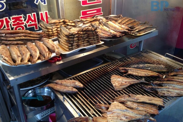동대문에 위치한 생선구이 골목은 연탄불 위에서 노릇노릇하게 구워지는 생선의 고소한 냄새로 가득 차 있다.