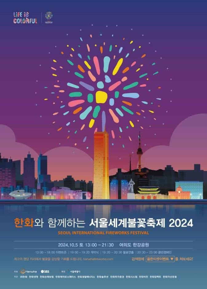 한강을 배경으로 펼쳐지는 서울 세계불꽃축제는 국내 최대 규모의 불꽃 축제로, 매년 수많은 관광객이 찾는 인기 축제입니다. 특히 한화가 준비한 아시아 최고 수준의 '멀티 미디어 불꽃쇼'는 빛과 음악, 레이저가 조화를 이루며 환상적인 밤을 선사합니다. 불꽃놀이가 시작되기 전에 여의도 한강공원에서 미리 자리를 잡고, 다양한 시민참여 프로그램도 즐겨보세요.