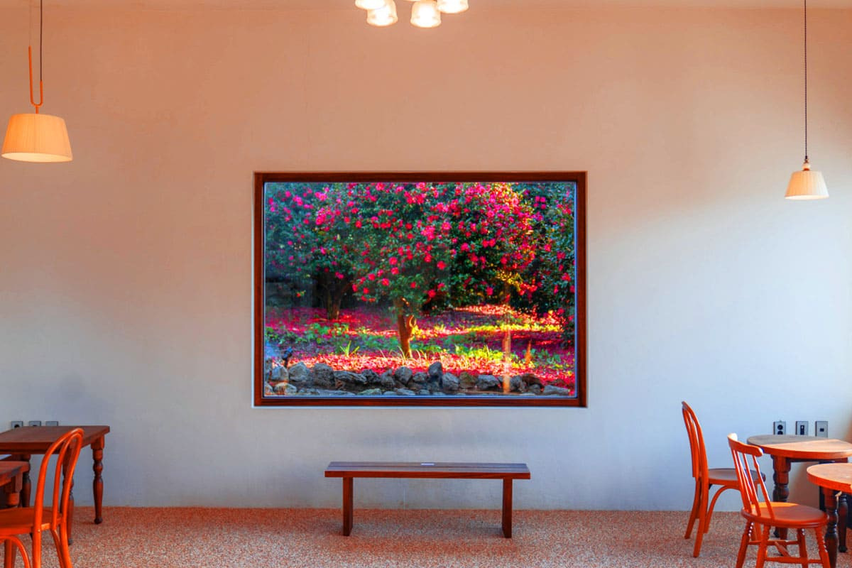 동백포레스트 창문 밖 동백 / 사진=인스타그램