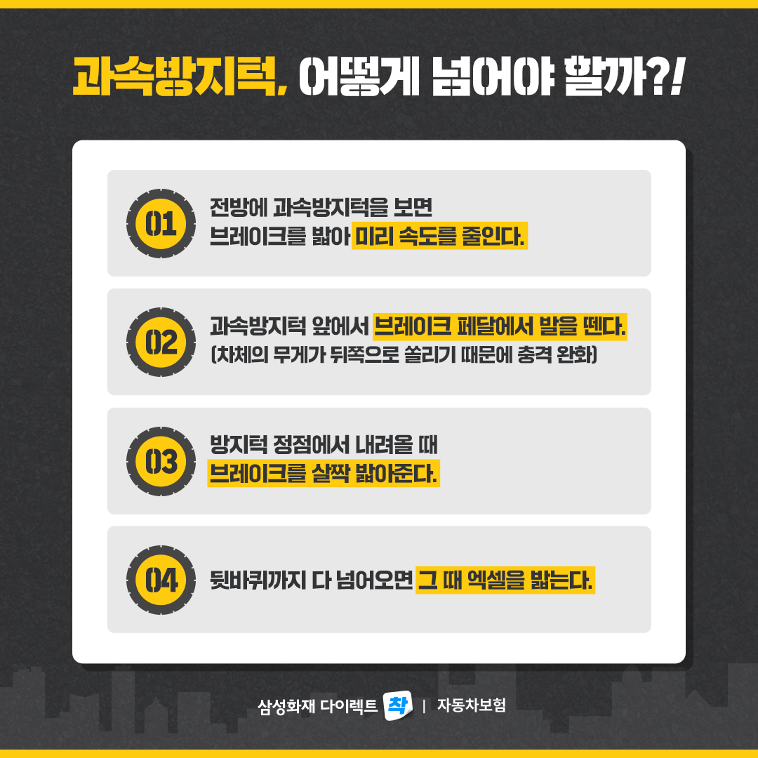 3. 방지턱 정점에서 내려올 때 브레이크를 살짝 밟아준다.