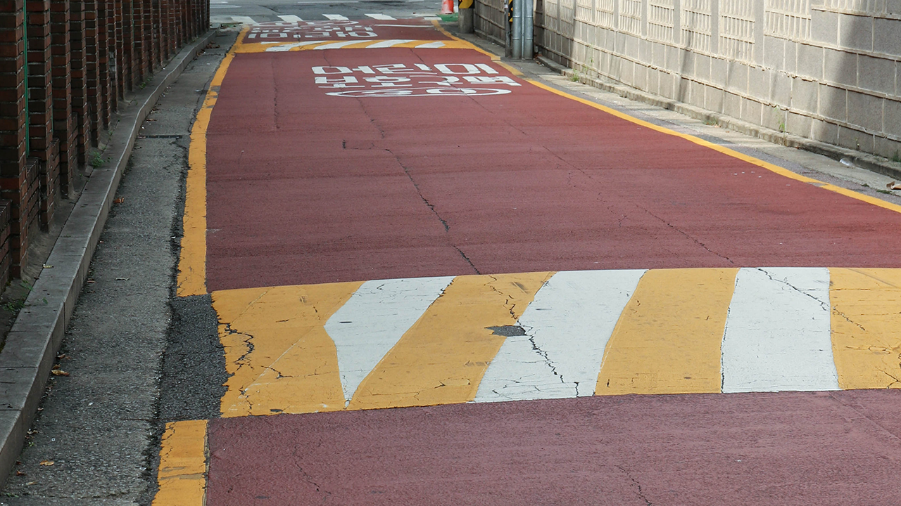 과속방지턱이 있다면 주행에 주의가 필요합니다