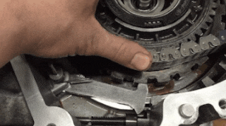 변속레버를 P에 넣으면 변속기 내부 파킹 기어에 고리가 딱! 하고 걸려 변속기 장치가 움직이지 않게 됩니다. 파킹기어 톱니 사이에 파킹폴이라는 고리가 정확하게 체결될 때까지 간격이 생기는데요.