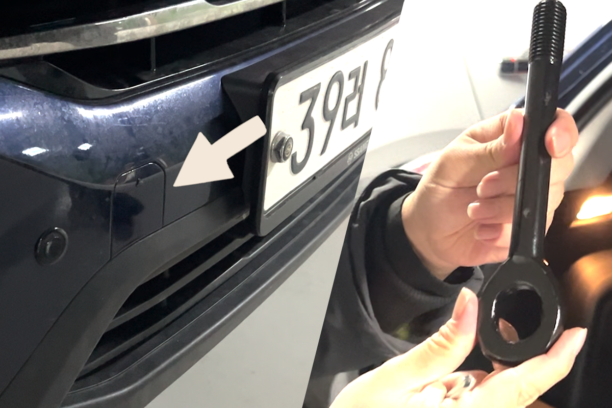 바로 내 차 트렁크 공구함에 고이 잠들어 있을 확률이 높은 ‘견인고리’ 입니다. 과거 2000년대 초반까지는, 대부분 차량 차량 범퍼 밑에 견인고리가 기본 장착되어 있는 경우가 많았습니다. 하지만 차량 범퍼 위치가 조금씩 낮아지기 시작하면서 요즈음은 대다수 차량이 탈착식 견인고리를 차량에 ‘기본 옵션’으로 넣어줍니다. 대개 차량을 구입할 때 트렁크 밑에 있는 ‘공구함’에 같이 들어있죠.차량에 따라서는 트렁크 밑 시트를 들어낸 뒤, 내부 시트를 한번 더 들어내야 보이도록 숨겨져있거나, 전기차의 경우 ‘프렁크’ 안에 들어있기도 하는 등 약간의 수납위치 차이는 존재합니다. 이 고리를 내 차량에 잘 끼워준다면, 해당 고리에 로프 등을 걸어 다른 차량의 도움을 받아 도랑 등에서 탈출할 수가 있습니다. 그런데 저 고리를 도대체 어디다, 어떻게 끼워야 하는 걸까요?