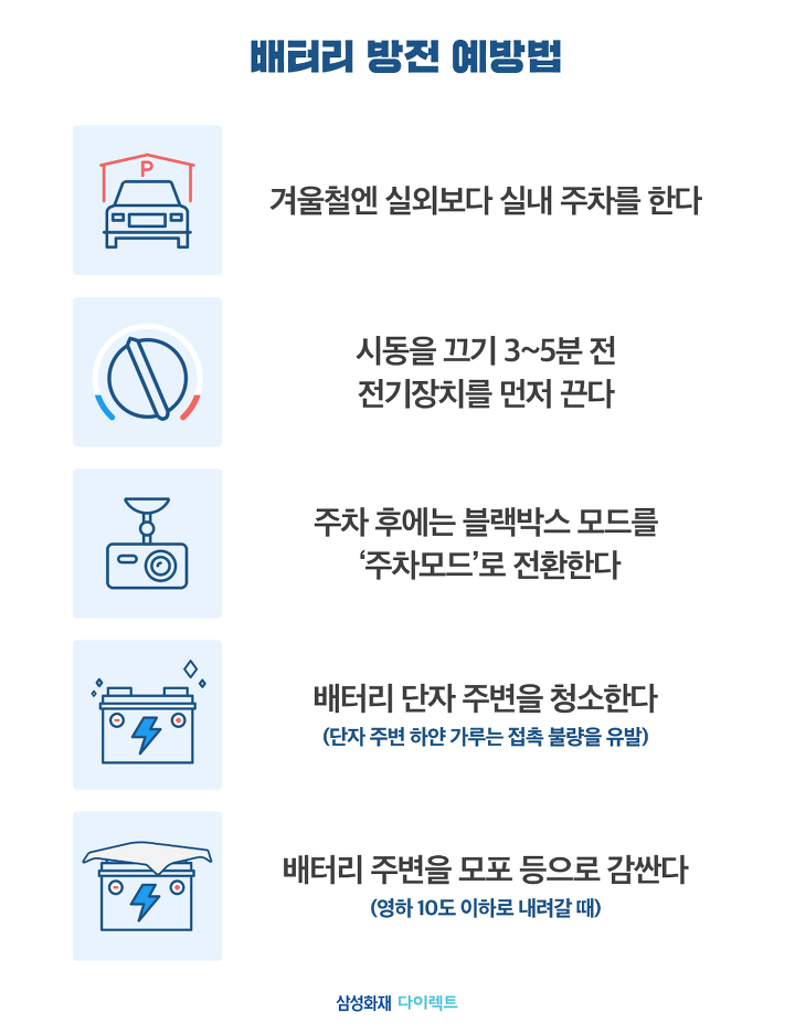 당황스러운 배터리 방전도 평소에 조금만 관심을 가지고 관리한다면 예방할 수 있습니다.