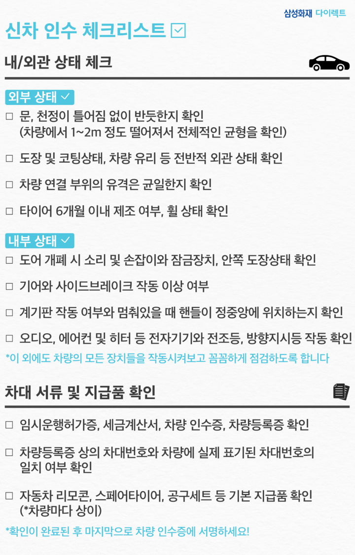 - 차량 인수증 서명 전, 차량 하자를 발견하였다면 차량 인수 거부 가능