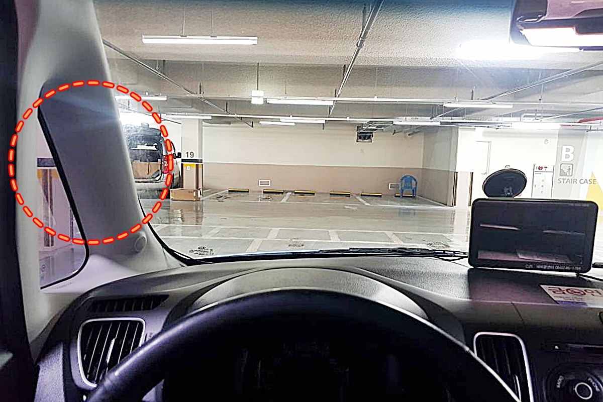 룸미러는 차선이 모두 보이고 뒷좌석의 목 받침이 살짝 보이도록 조정하는 것이 가장 이상적이다. 룸미러가 아래로 내려가면 사각지대가 늘어날 수 있으므로 주의하는 것이 좋다. 또한 운전석 좌우 기둥 부분인 A 필러는 운전자의 시야가 가려지는 부분이기 때문에 시야를 넓게 보는 습관을 들여야 한다.