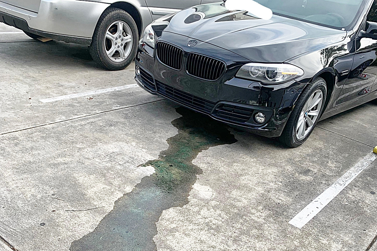 초록색, 노란색, 파란색 등이 차량의 워터펌프나 하부 라디에이터 주변에 흘러내렸다면, 이것은 냉각수가 누수된 것이다. 누수된 액체에서 달콤한 냄새가 나는 것도 냉각수 누수의 특징이다. 마지막으로 누유된 오일의 색이 식용유 색과 비슷한 노란색 오일이라면 이는 브레이크 오일의 누유다. 브레이크 오일 탱크에 남은 양을 통해 확인할 수도 있는데, 일반적으로 브레이크 오일은 줄어들지 않으므로 MAX와 MIN 눈금 사이에 오일이 없다면, 누유를 의심해 봐야 한다.