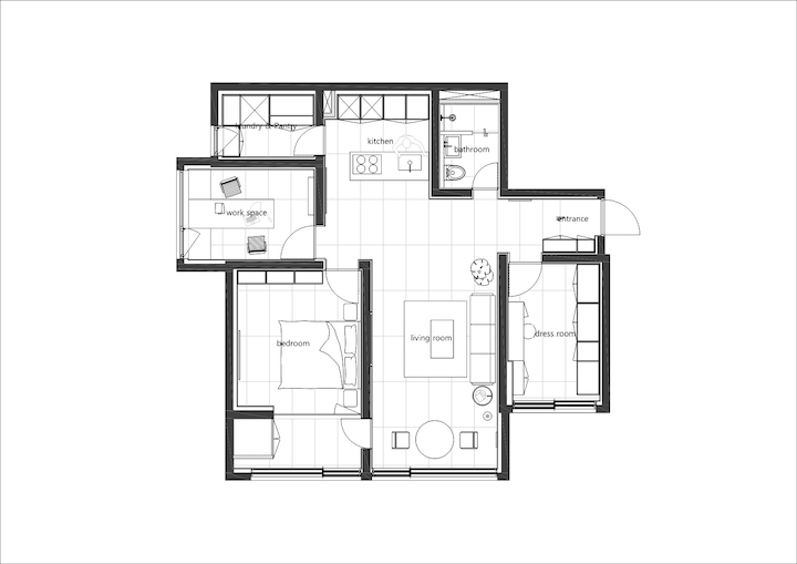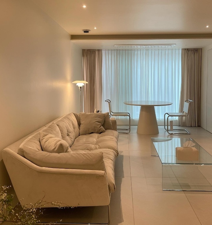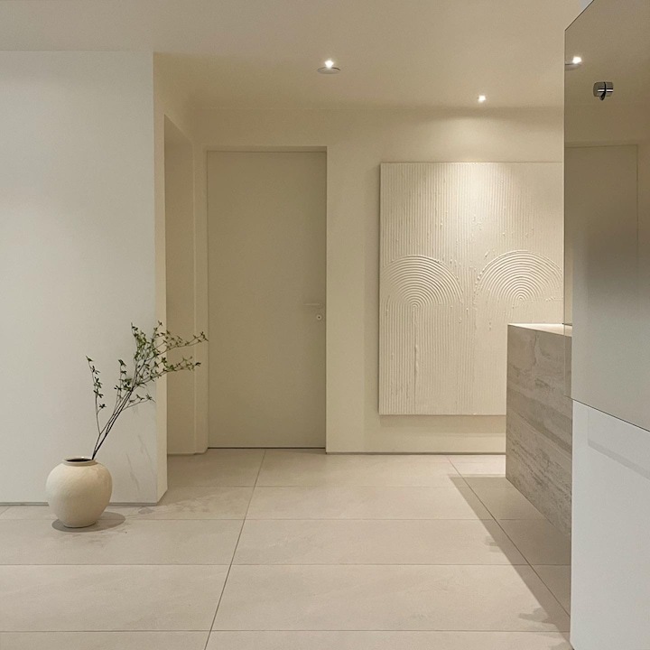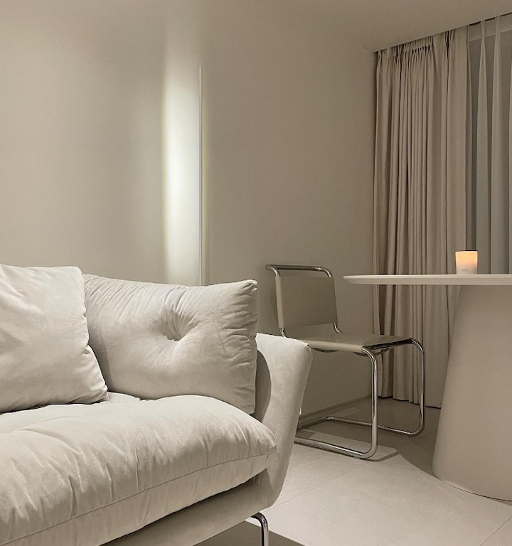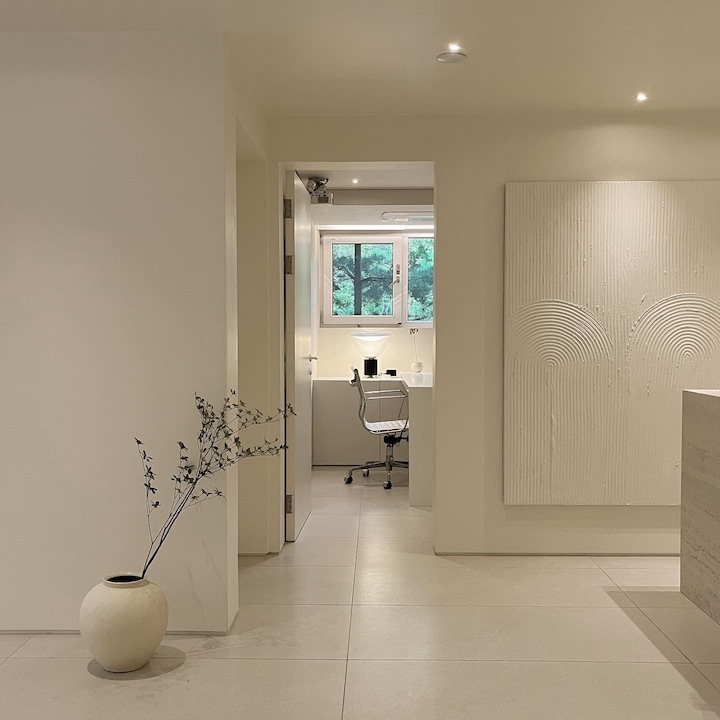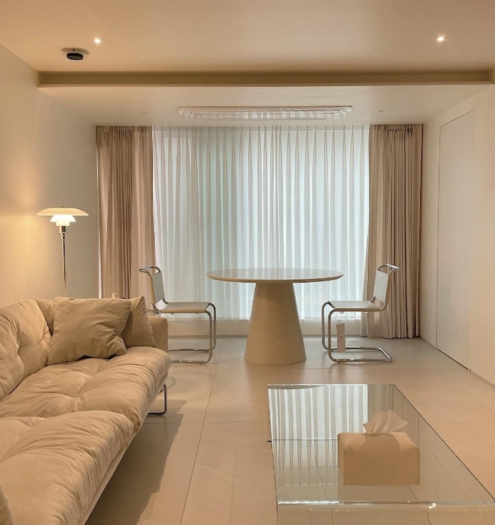 마감재가 적을수록 레이아웃과 수납 설계는 좀 더 디테일하게 해야 하고 인터폰, 스위치 같은 기능적인 요소들의 배치들을 신경 써주는 게 좋아요. 그리고 조명의 색 온도 조절까지 고려한 가구 배치까지 신경 써주면 제일 완벽해요:) 아이템 하나씩 설명드릴게요!