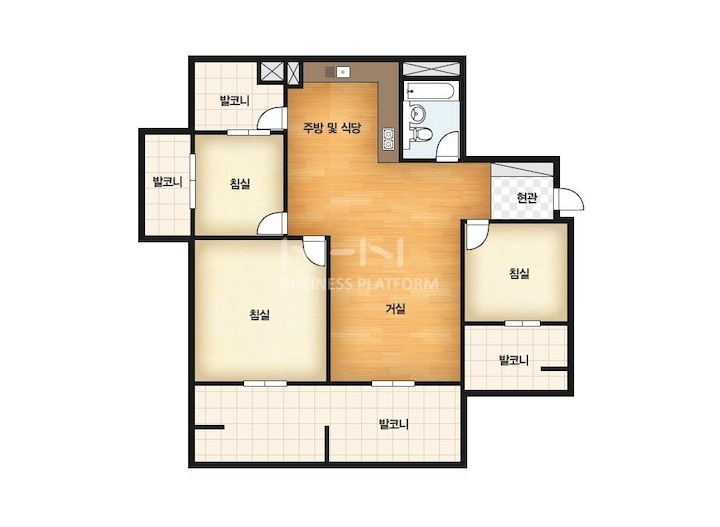 기존의 ㄱ자 주방이에요. 넓게 활용할 수 없을 뿐만 아니라 20평대 특유의 작은 주방과 세탁실을 갖고 있어서 전반적인 구조 변경이 필요한 상태였어요.