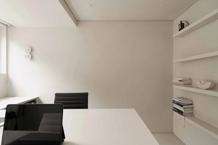 소형 평수의 경우 마감재는 최대한 통일하고 유동 가능한 액자나 오브제를 사용하면 좋아요. 톤은 무조건 화이트를 사용하면 차갑고 가벼운 느낌이 있어서 오프 화이트에 '톤온톤'으로 베이지 또는 웜 그레이를 사용하면 질리지 않고 차분한 분위기를 연출할 수 있답니다.