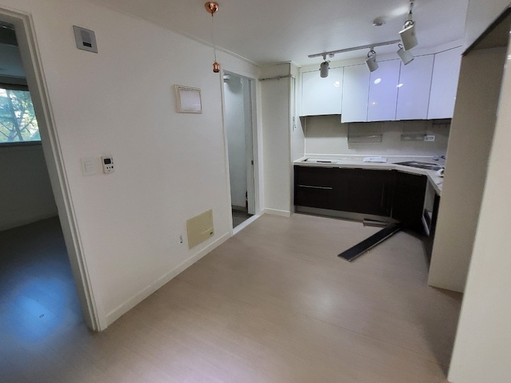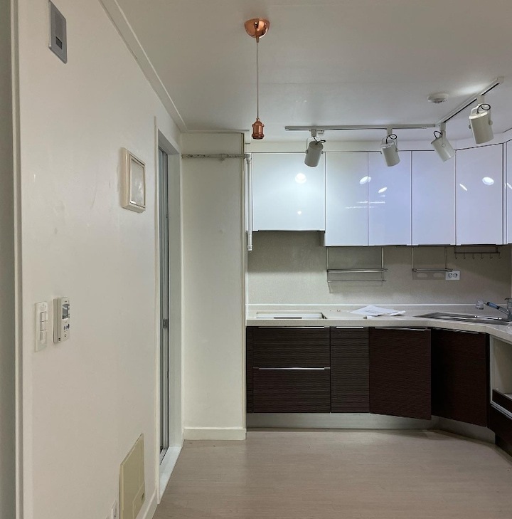 전반적으로 지저분한 상태의 공간을 집중적으로 바꾸는 것을 목표로 리모델링하였고, 주방의 구조, 세탁실, 입구에서 보이는 여러가지 시설들을 감추는 데에 포커스를 맞춰서 리모델링을 진행했어요.
