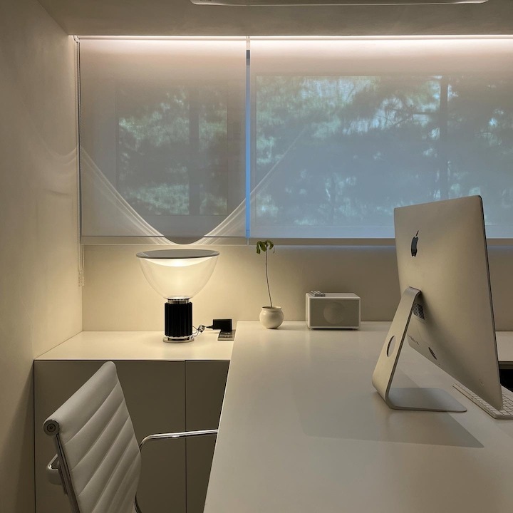 밤에 이렇게 가끔 무드를 내주기도 좋은 공간이에요:) 좁은 공간이지만 재택 근무할 때도 나름 용이하게 잘 사용하고 있는 공간이랍니다.