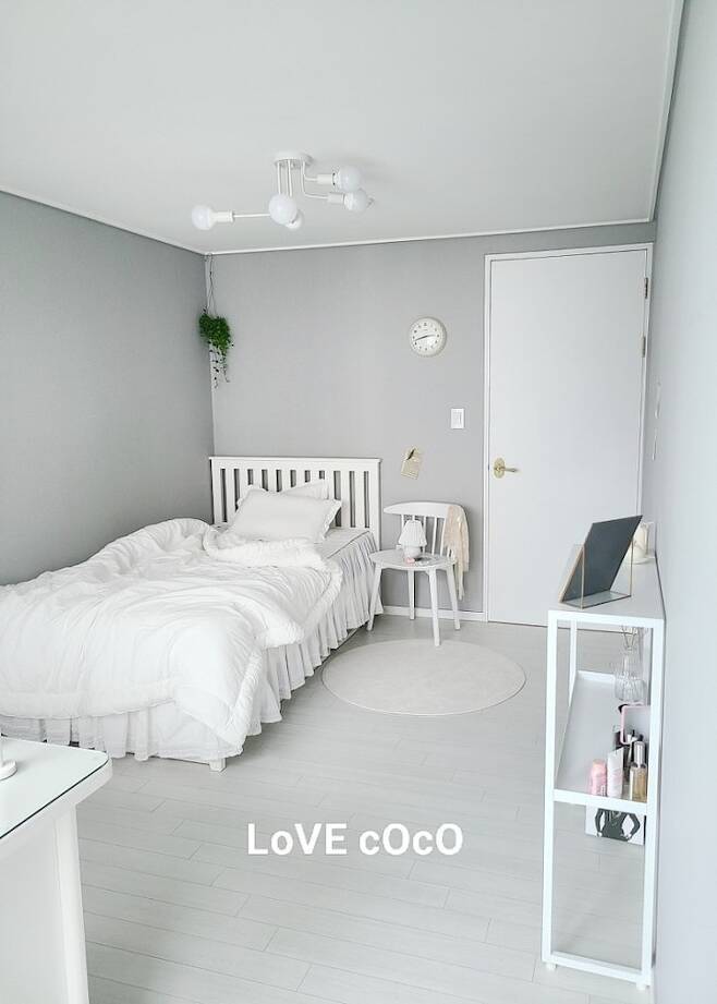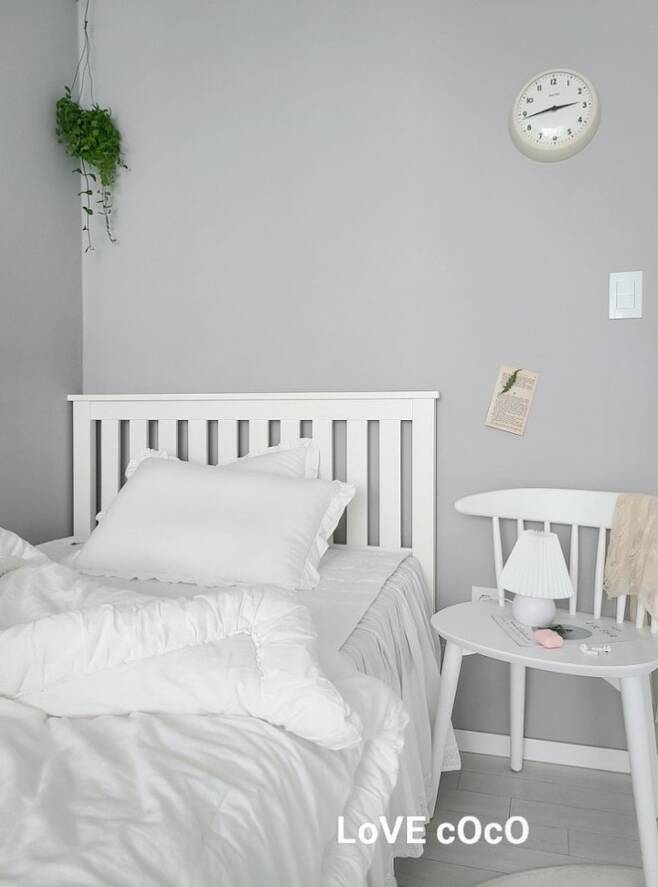 먼저 큰딸 방입니다! 침대 머리 방향이 딱! 북쪽이네요. 창문의 위치는 아이 침대 발끝 쪽인 남쪽인데, 아이가 침대 위치를 이렇게 놓고 싶다고 해서 그냥 놓아주었는데요.