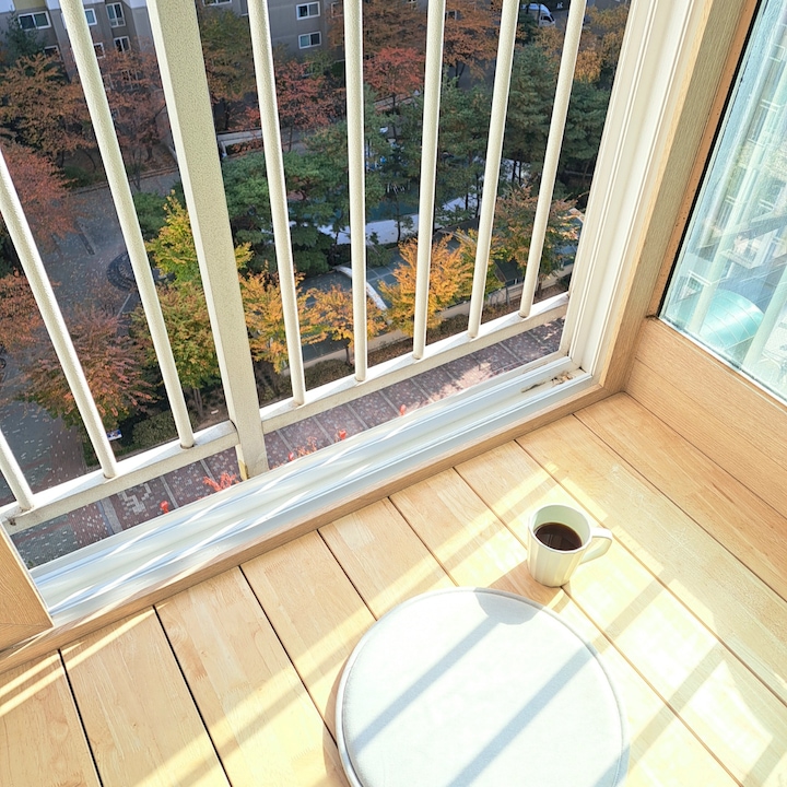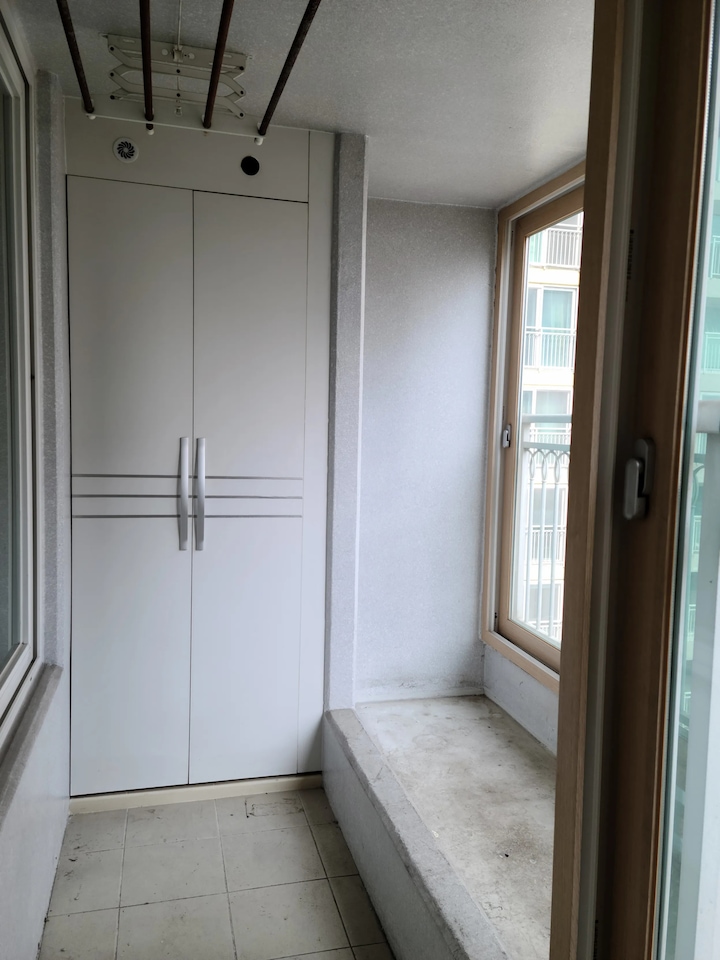 베란다의 가장 큰 변화는 빨래 건조대를 없애고 화단 덮개를 제작해 데크를 만든 것이에요. 건조기가 있어 자주 사용하지 않을 것 같아 과감하게 없앴고 필요하다면 접이식을 구매해 사용하지 않을 때는 붙박이장에 넣어둘 생각이에요.