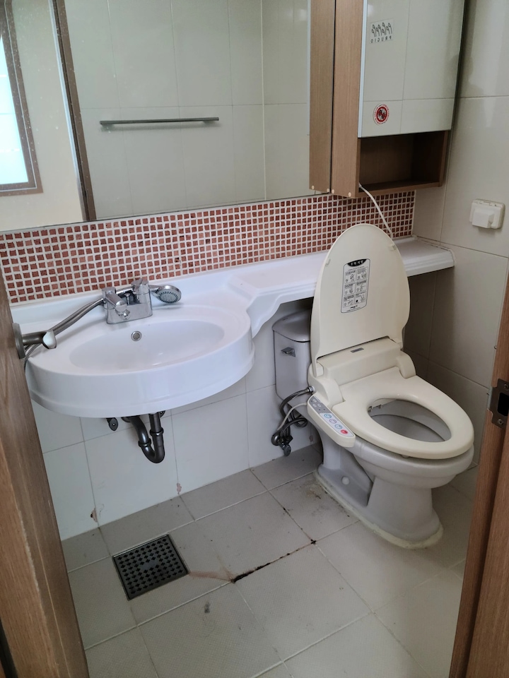 방수 공사, 타일 덧방, 욕실 도기와 수납장 교체, 젠다이 설치