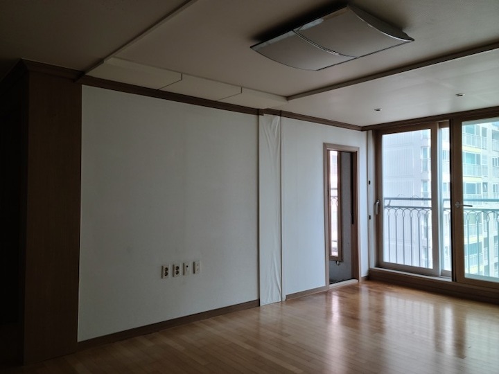 남편에게 인테리어를 하자고 말하게 된 대부분의 이유가 거실에 있었어요. 체리색의 갈매기 몰딩, 우물형도 아닌 애매한 천장, 벽에 박힌 몰딩에 도배지를 발라 들뜬 상태를 보면서 새로 도배를 하더라도 크게 달라지지 않을 것 같았거든요.