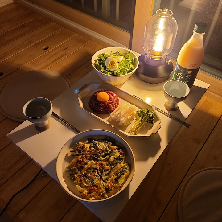 데크 덕분에 코로나로 집에 있어도 야외에 있는 느낌을 낼 수 있고 비가 오는 날에는 빗소리를 가까이서 들으며 막걸리에 파전을 곁들이며 시간을 보내기도 해요.