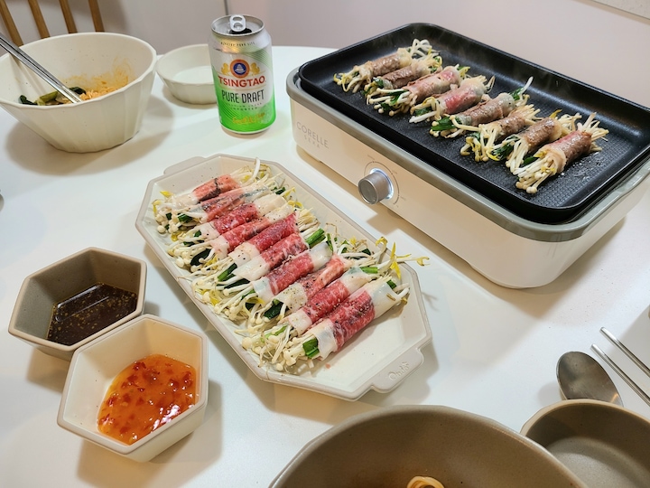 상부장이 너무 미니멀하죠? 신혼 살림을 준비하면서 6인용 그릇 세트와 유리컵 2개, 냄비와 프라이팬만 샀고 나머지는 살면서 채워나가기로 했는데 선물로 받은 컵 외에 그릇 욕심이 없다 보니 더 채워지지 않더라고요.