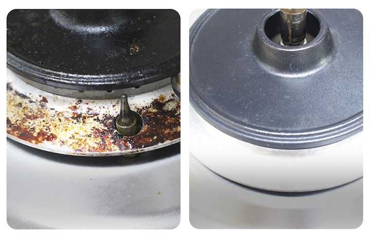 요리할 때마다 눈에 가시였던 눌러붙은 묵은 때들, 베이킹소다와 과탄산소다 사용법 숙지 후 완벽하게 새 버너가 되었어요. 피부에 독한 주방세제가 아닌 친환경세제로 힘들이지 않고 가스레인지 청소 하는 방법, 알려드릴게요!