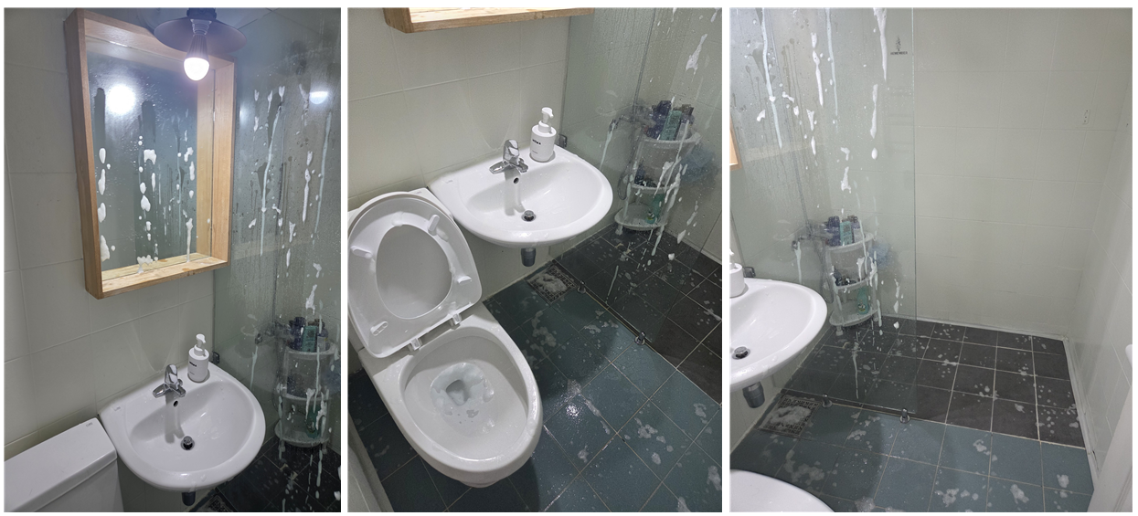 3) 소요시간 : 30분 내외 (저는 샤워 직후 화장실 청소를 시작합니다. 화장실 바닥에 물기가 있는 상태에서 세정제를 뿌리면 더 효과적으로 묵은 때가 불려집니다)