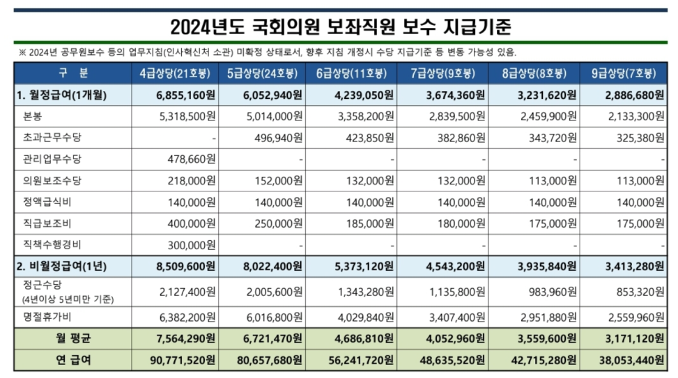 2024년 국회의원 월급 연봉 얼마일까? 세전, 세후 실수령액 보좌관