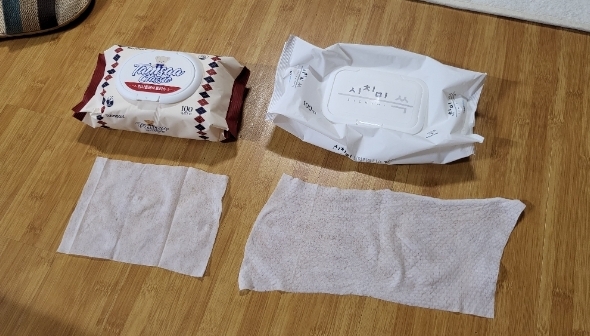 물론 비싼 물티슈에 비하면 크기나 두께나 택도 없지만~