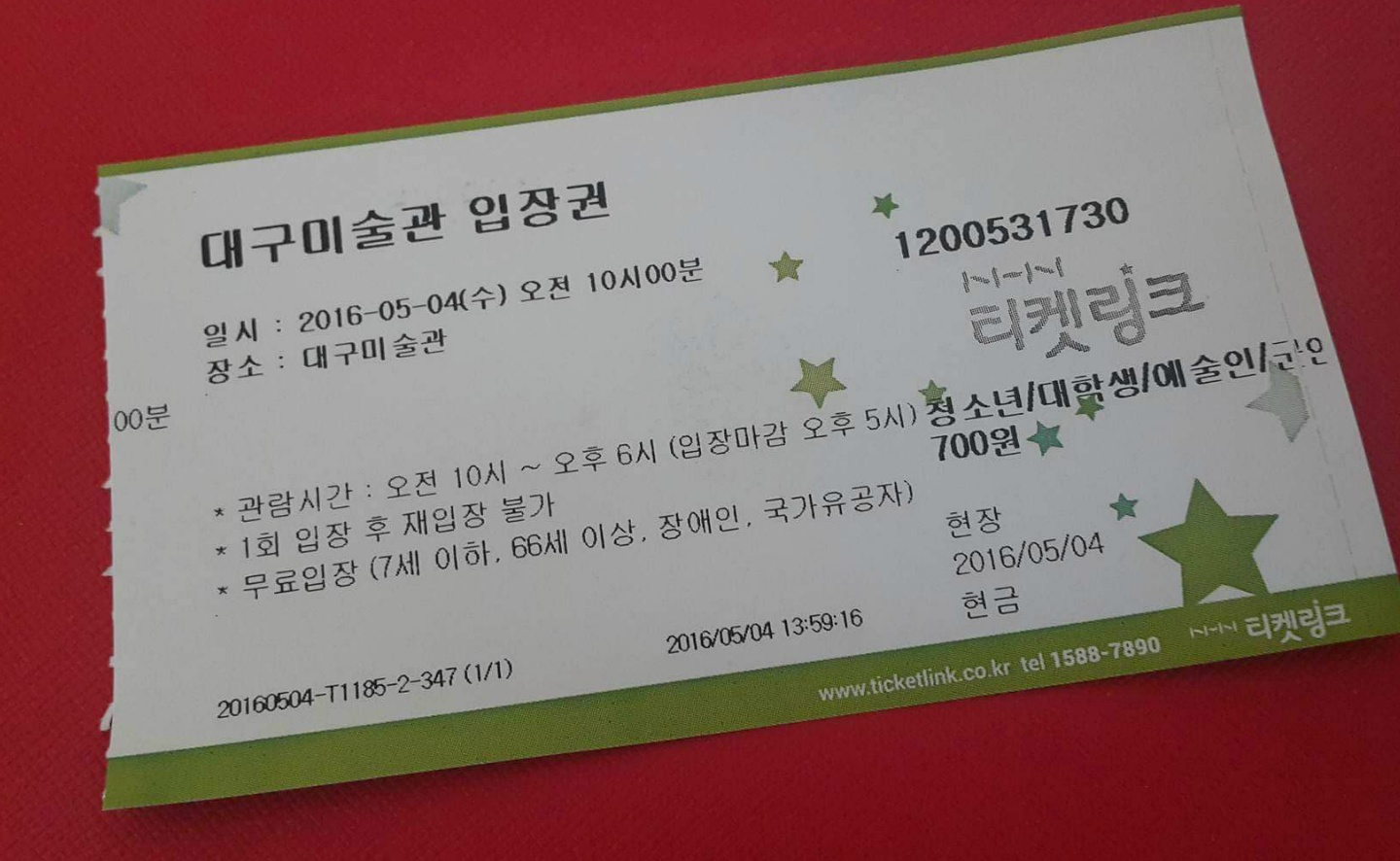 울릉도에 살다가 고등학교를 다른지역으로 오게되었다. 울릉도에는 미술박물관이 없을 뿐더러 여행을 다녀도 미술관을 방문할기회가 많지않다. 평소 그림그리기를 좋아했던 나라서 미술수행평가덕에 미술박물관방문할 기회가 생겨서 좋았다. 걱정반,설렘반 아직까지 여기 교통수단이 낯설어서 걱정이되기도했고, 친구들이랑 처음으로 같이간다는 생각에 설레기도 했다. 중간고사를 마치고 기숙사친구들이랑 버스를 타고 홈플러스앞에 내렸다. 이미갔다온 친구들말을 들어보니 셔틀버스가 있다고 들었는데 홈플러스앞에는 셔틀버스가 없었다. 아마도 셔틀버스있는 장소를 잘못안것같다. 기숙사를 나가는 날이여서 빨래짐이 한가방이였다. 박물관을 방문하기전에 홈플러스에 몬저 들려서 가방,빨래가방을 맡겨두고 걸어서 올라갔다. 아무리올라가도 박물관이 안보였다. 올라가다보니 어떤아저씨가 와보라는 손동장을 했다. 그래서 친구는 "대구박물관"이라고 소리쳤다. 그래도 아저씨는 계속 오라는 손동장을 하였다. 친구는 또 " 대구박물관"이라고 소리쳤다. 그러더니 친구가 하는말이 "야! 저거 자전거 타러오라하는거다" 오르막길가느라 힘들었던 우리는 덕분에 잠시 웃었다. 너무힘들어서 안힘든척할라고 노래도 틀고 춤도추면서 갔지만 대구미술관은 보이지않았다. 한참가니 경기장하나가보였다. 처음엔 그경기장을보고 미술관이라생각하고 기뻐했지만 아니라서 실망이컸다. 가다가 할머니한분을 만나 길을 물어보고 드디어 찾았다. 미술관으로 소풍을온 초등학생들이 보였다. 이런곳으로 소풍을올수있는 초등학생들이 부러웠다. 미술관옆에 결혼식장이 있었는데 처음에 잘못들어가서 친구들 놀렸다. 미술관앞에가니 '뒤러의 토끼' 작품들이 있었다. 미술관아네서는 사진을 못찍으니 들어가기전 사진을 사진을 찍고 들어갔다. 우리말고도 미술관을 구경하러온 다른학교학생들이 많았다. 입장권을 끊고 들어갔다. 들어가니 많은 도자기들이 보였다. 도자기옆 구석에 미끄럼틀처럼생긴 작품이 하나있었다. 가까이가서 글을 읽어보지 않았더라면 난 아직까지도 놀러온 애기들을 위한 미끄럼틀인줄 알고있었을것이다. 그 작품은 너도밤나무로 만들어졌다. 목공예를 통해 나무의 쓰임과 역활에 대해 이야기하는 안문수 작가는 나무라는 소재에서 느낄 수 있는 생명체의 따뜻한 논기를 디자인하는 작가로 자연의 숨결과 공간에 중점을 두어 의자, 테이블 등 다양한 가구를 포함한 조형물들을 제작하고 있다고 한다. 많은 작품들이 있었지만 들어가자마자 보았던 도저기들이 눈에 띄였다. 도자기 주위에는 들어가지말라는 표시로 줄이 둘러 있었고 도자기를 구경하러가니 앉아있던 언니들이 갑자기 일어서서 우리뒤를 따로왔다. 솔직히 많이 부담이되서 대충둘러보고 나왔다. 중학교2년동안 수행평가로 도자기를 만들어조기도했고 그림을 그려 구워보기도 했다. 미술관에 있던 도자기와는 다른점이 내것보다 크다는점이였다. D.N.A전에 설치된 도자기들은 예술자체로만 해석되지얺고, 경제 사회 문화와 연결된 현대의 모습을 반영하는 흥미로운 미술의 반향을 재발견할수있는 기회가 되길 바라며, 디자인과 순수 미술이 어떠한 형태로 서로 접목되고 있는지를 보여주고한다고 한다. 다음으로 관심있게 본 작품은 김병호작가의 작품이었다. 알록달록한 색으로된 막대기가 바닥과 천장을 지탱하고있는게 다였다. 이작품은 마치 울릉도에있는 국수바위랑 엄청 비슷하게 생겼었다. 잊고있었던 울릉듀를 잠시남아 기억할수있는 기회였다. 비록 나의 선택으로 방문한 미술박물관은 아니지만 전시된 작품들을 감상하면서 수행평가로인해 왔다는생각은 잠시잊고 많은 생각을하면서 감상하였다. 이런박물관이나 미술관을 방문할때마다 그냥 둘러보고 그림, 작품 아무생각없이 둘러와봤지만 고등학생이되어 처음 방문한 미술관이라 기억속에 오래오래남을것이고 관심을가지고 봐서그런지 지루하지도 않았고 재미없다는 생각은 하지못했다. 작품하나하나를 보며 친구들과 각자 서로다른 의션을 제시하며 비교하고, 닥가들은 어떤생각을가지고 작품을 구성하였는지, 내가 한걸음 더 성장할수 있는 좋은 기회였다. 엄마가 그림에 관심이 많다. 그래서 우리집에는 엄마가그린 작품이 몇개나된다. 엄마랑 왔었더라면 엄마가 참 좋아했을것이라는 생각이 들었다. 다음에는 가족들이랑 와보아야겠다.