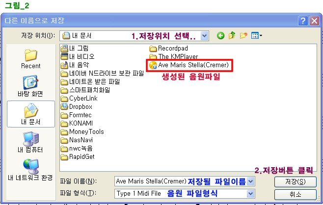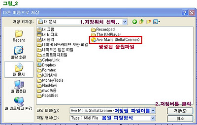 [그림_2] 화면이 나타납니다. 1.저장할 위치 선택하시고 2,저장버튼을 클릭합니다.